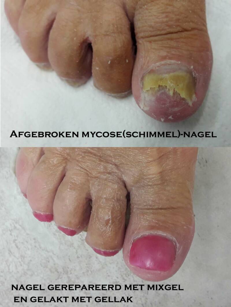 Afgebroken nagels kunnen gerepareed worden, met een mixgel.
